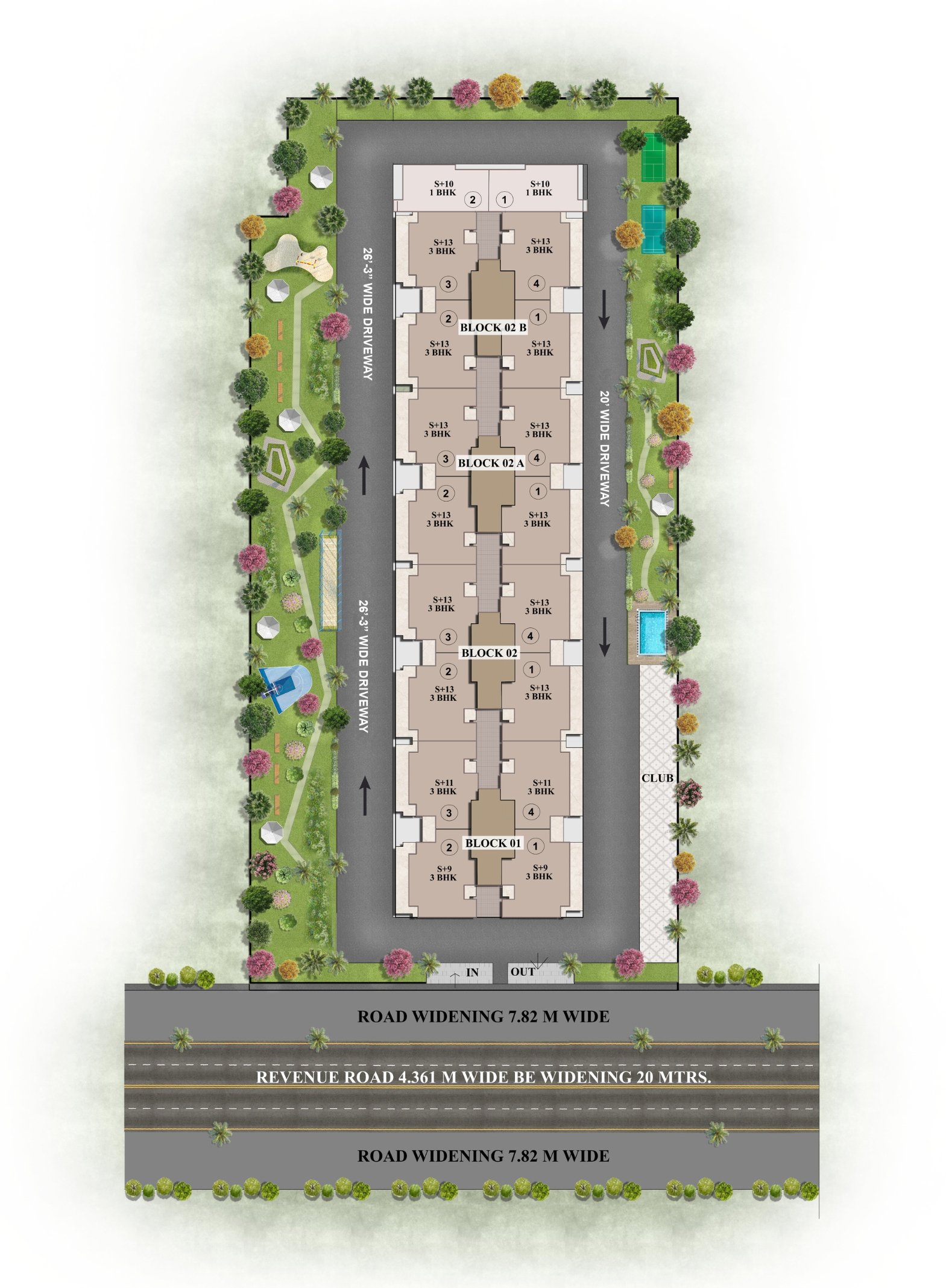 The site plan of Hermitage Royale reflects a well-thought-out blend of form, function, and flow. Every element—from tower placement to landscape zoning—has been meticulously crafted to create a seamless living experience. The emphasis lies in maximizing open space, ensuring privacy, and offering residents convenient access to all shared amenities.