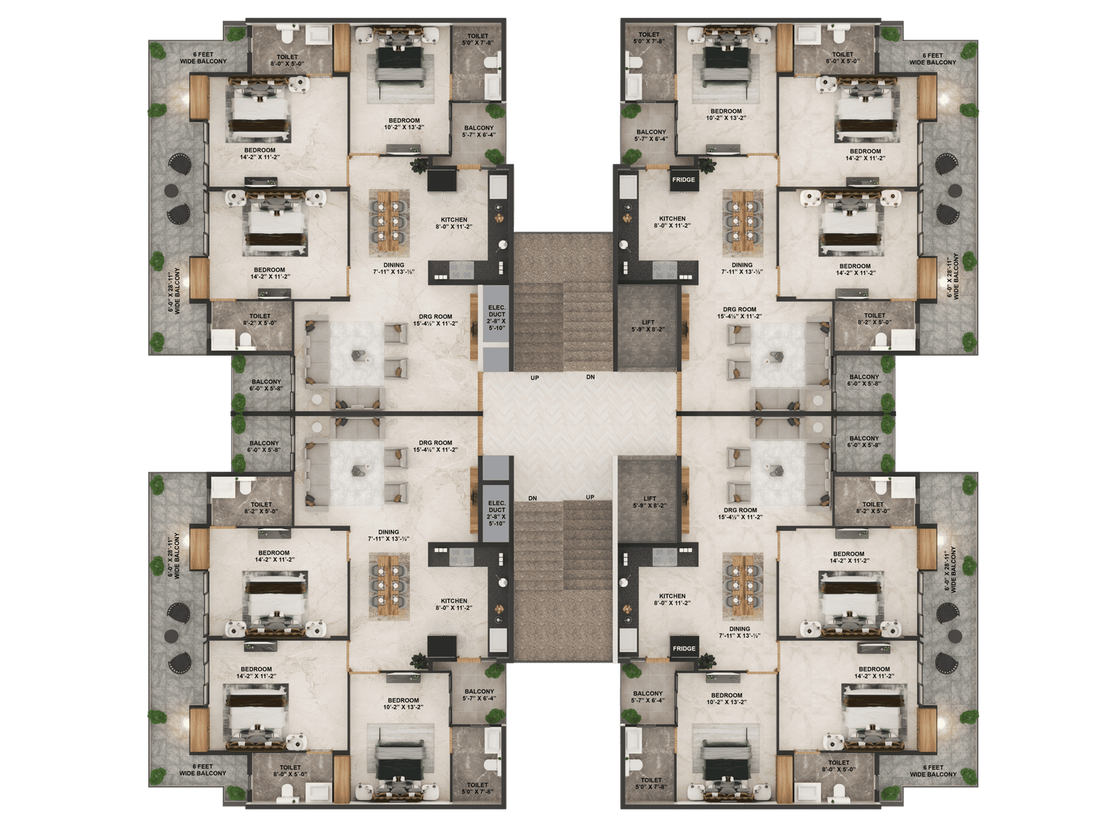 6-feet wide balconies for relaxation and outdoor seating
